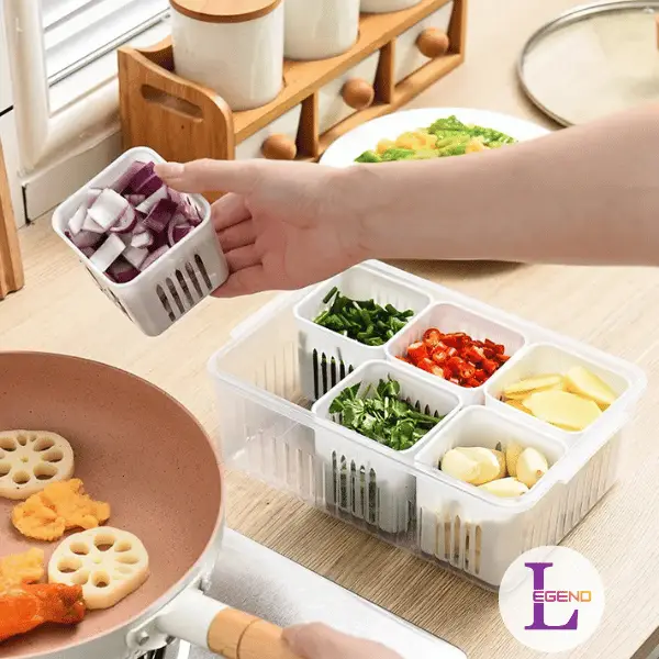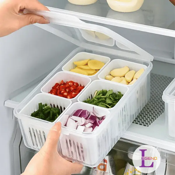 ফ্রিজের ভেতরটা অগোছালো থাকলে খাবার নষ্ট হওয়ার সম্ভাবনা থাকে এবং দরকারি জিনিস সহজে খুঁজে পাওয়া যায় না। আপনার ফ্রিজকে স্মার্টলি সাজিয়ে রাখতে Legend Shop BD নিয়ে এলো মাল্টি-ফাংশনাল Fridge Storage Box। এই স্টোরেজ বক্সে রয়েছে ৬টি আলাদা কম্পার্টমেন্ট, যা আপনার ফ্রিজের জায়গা বাঁচানোর পাশাপাশি সবজি, ফল, আদা-রসুন এবং কাটা মসলা আলাদাভাবে সংরক্ষণ করতে সাহায্য করে।