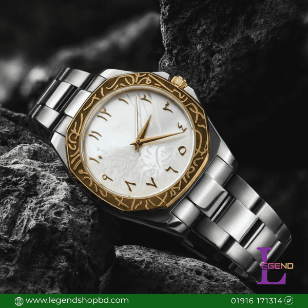 ১. ইউনিক অ্যারাবিক ডিজাইন: ঘড়িটির ডায়ালে থাকা মার্জিত আরবি সংখ্যা এবং রাজকীয় ফিনিশিং আপনার সাধারণ পোশাকেও এক বিশেষ আভিজাত্য ফুটিয়ে তোলে, যা আপনাকে যেকোনো অনুষ্ঠানে সবার মাঝে আকর্ষণীয় ও আলাদা করে তুলবে।